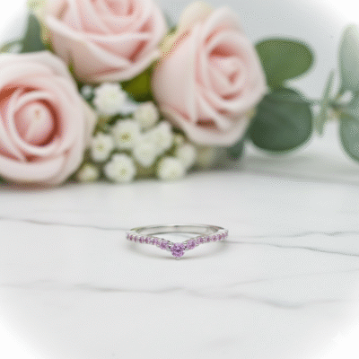 ₹980.00Original price was: ₹980.00.₹480.00Current price is: ₹480.00.An elegant pure 925 sterling silver ring featuring a graceful curved design accented with shimmering pink stones. Refined, lightweight, and perfect for everyday wear.