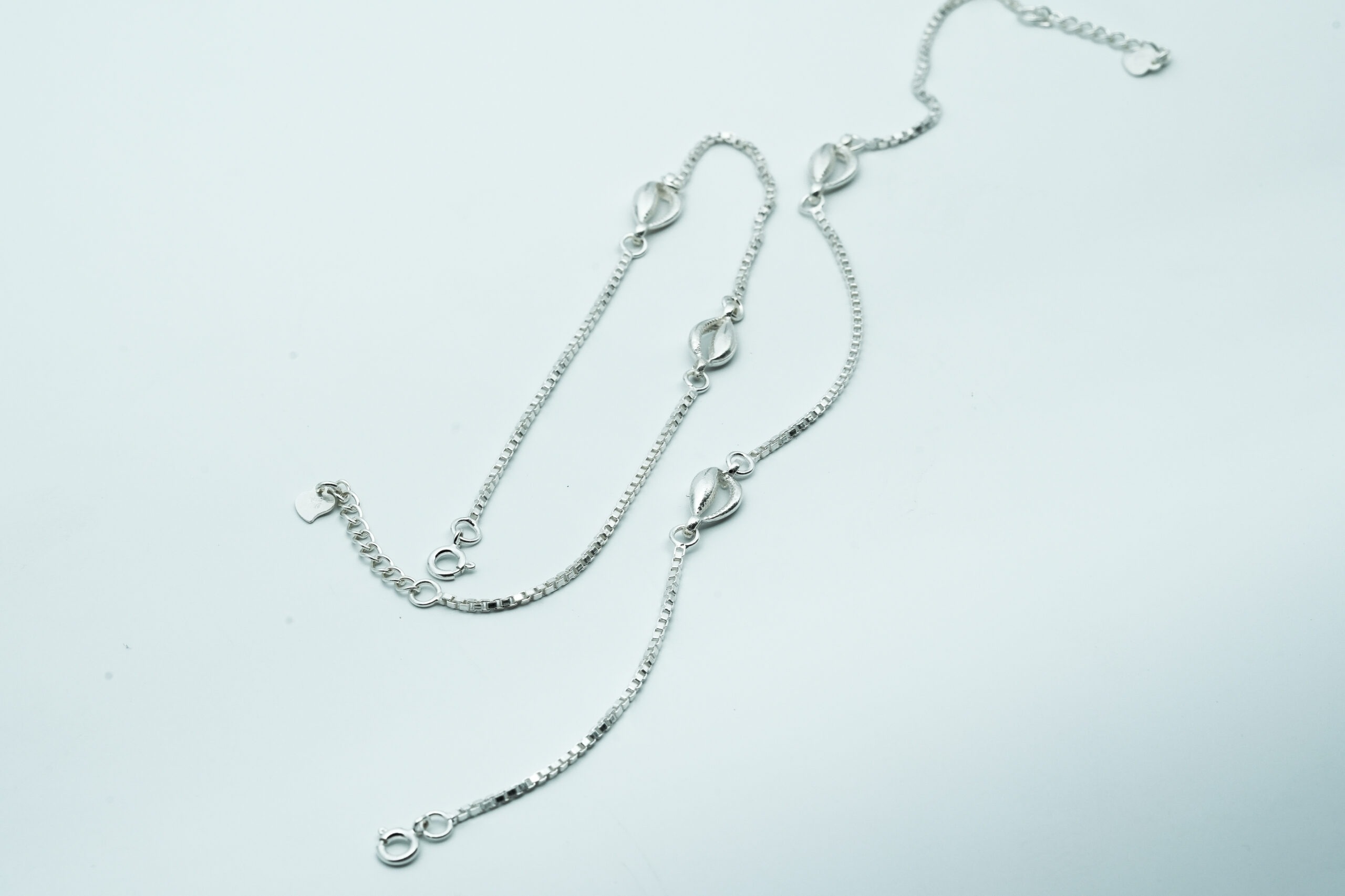 The Sterling Silver Shell Anklet combines purity with timeless design.
