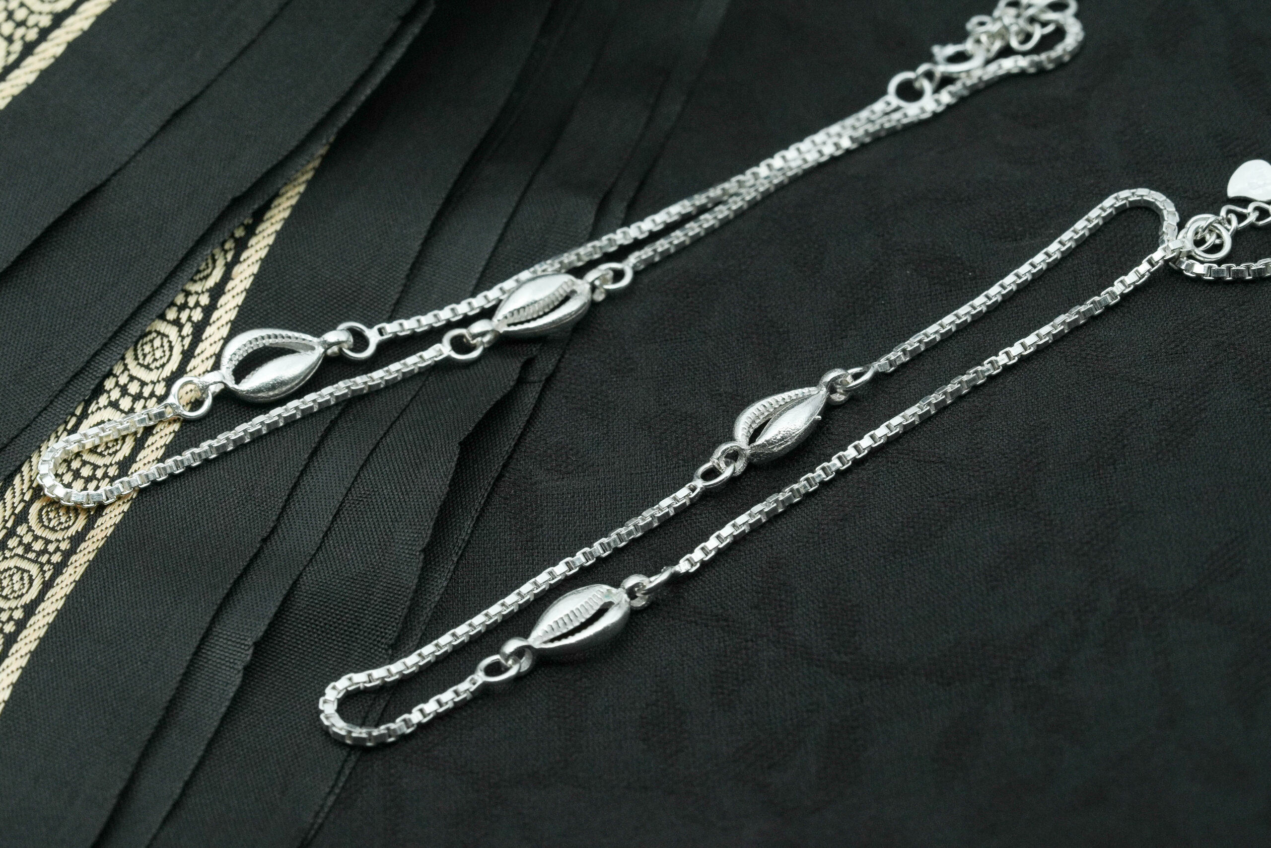 Bring a touch of coastal elegance to your style with this Sterling Silver Shell Anklet pair. Featuring sleek chains and delicate shell charms, crafted in 925 sterling silver, these anklets offer a minimal yet refreshing everyday look.
